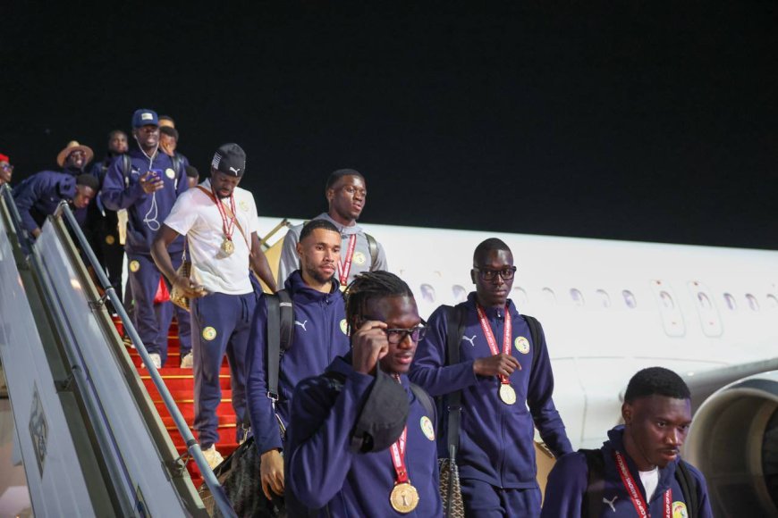 Abakinnyi b’ikipe y’igihugu ya Senegal Les Lion de Teranga yegukanye Igikombe cya Afurika 2025 bakiriwe mu cyubahiro gikomeye na Perezida wa Repubulika ubwo bageraga ku kibuga cy’Indege mpuzamahanga Blaide Diagne ,