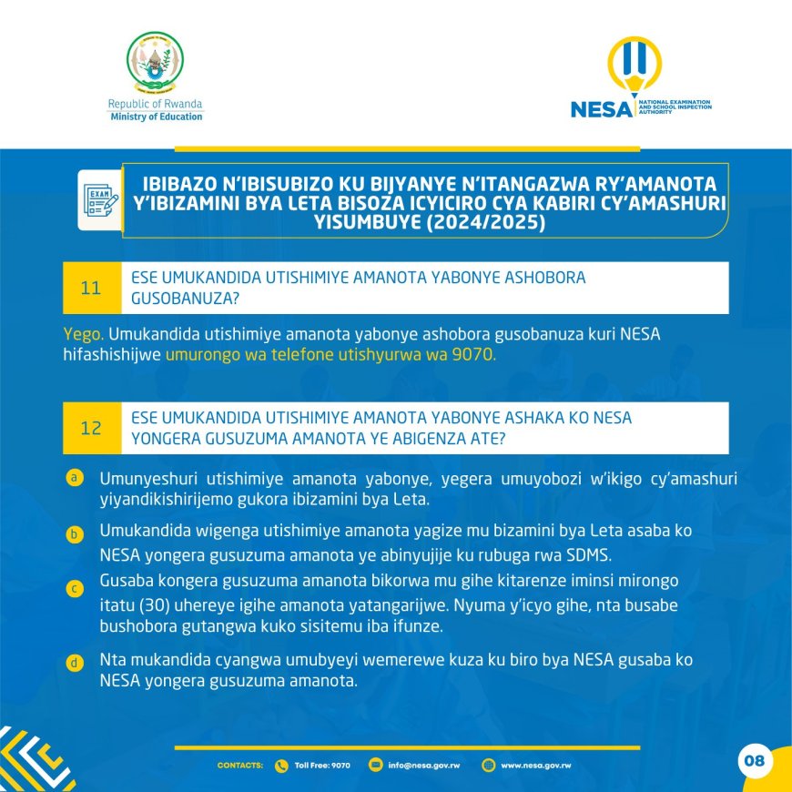 Bimwe mu bisubizo by'ibibazo wibaza ku bizamini bya Leta bisoza amashuri yisumbuye umwaka w'amashuri wa 2024/2025: