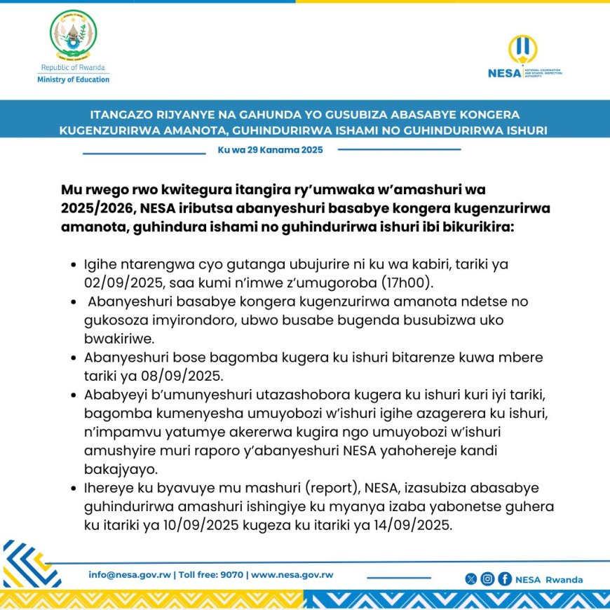 ITANGAZO RIJYANYE NA GAHUNDA YO GUSUBIZA ABASABYE KONGERA KUGENZURIRWA AMANOTA, GUHINDURIRWA ISHAMI NO GUHINDURIRWA AMASHURI.
