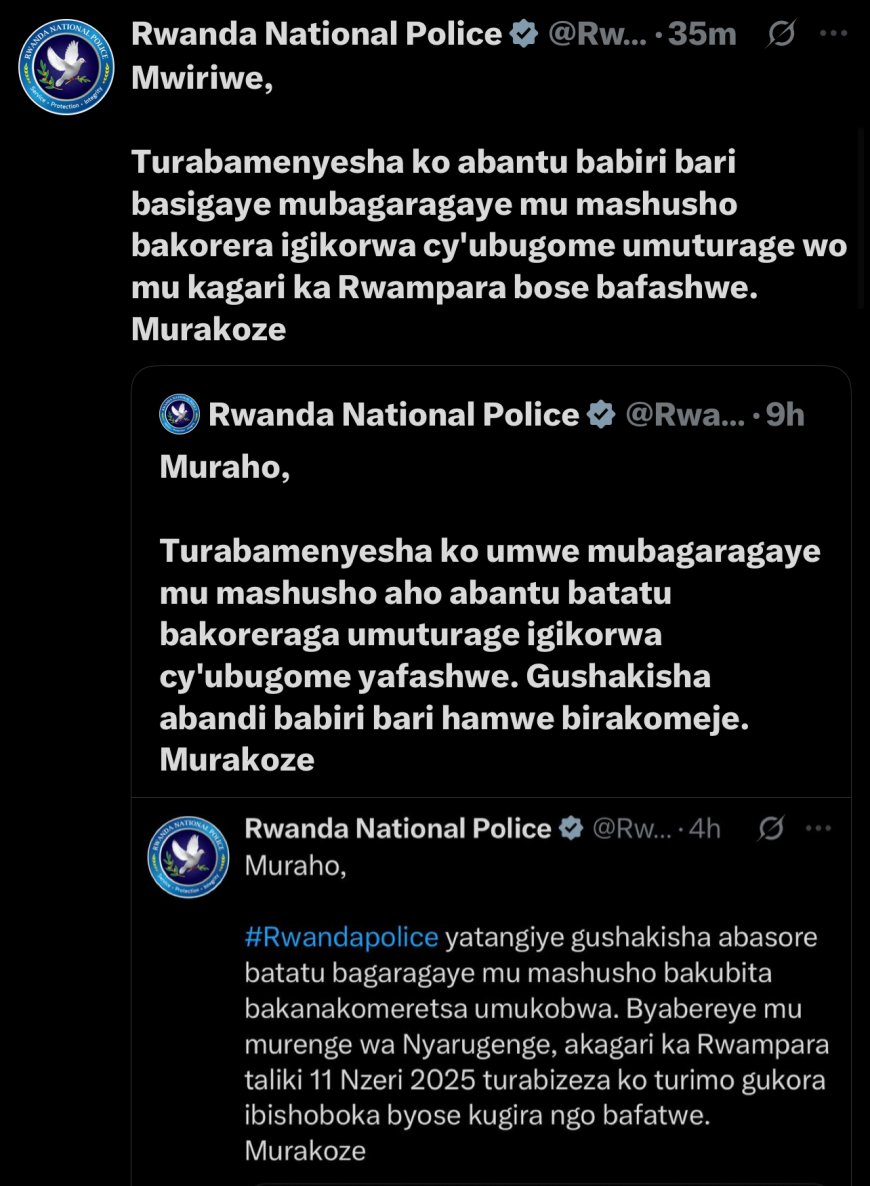 Aya ni amakuru yatangajwe kuri uyu wa Gatanu nijoro ku rukuta rwa X rukoreshwa n’Umuvugizi wa Polisi y’u Rwanda.