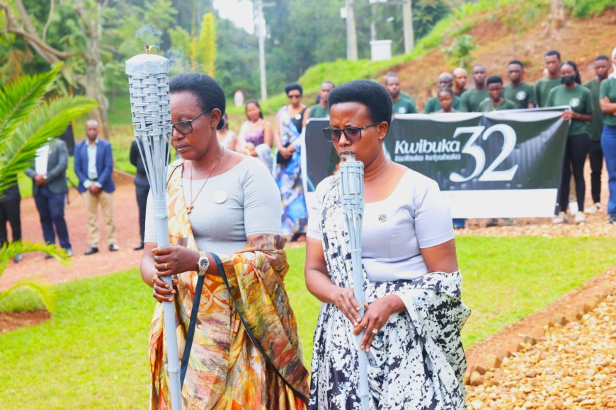 Ati: “Ku nshuro ya 32 Jenoside yakorewe Abatutsi ihagaritswe, hari byinshi byo kwishimira Imiyoborere myiza yatugejejeho. Turasabwa rero kubisigasira, tugakora cyane kugirango duhamye umuco w’Ubumwe bwacu. N’ubwo bigaragara ko ingenagbitekerezo ya jenoside igihemberwa, ntibiduce intege kuko nta na rimwe ikibi gitsinda icyiza. dufatanye, tuyirwanye, izatsindwa.”