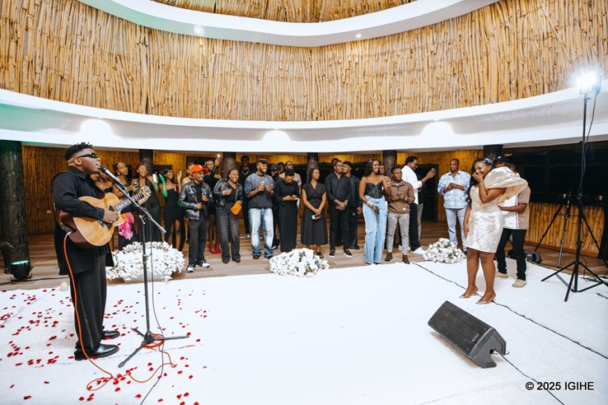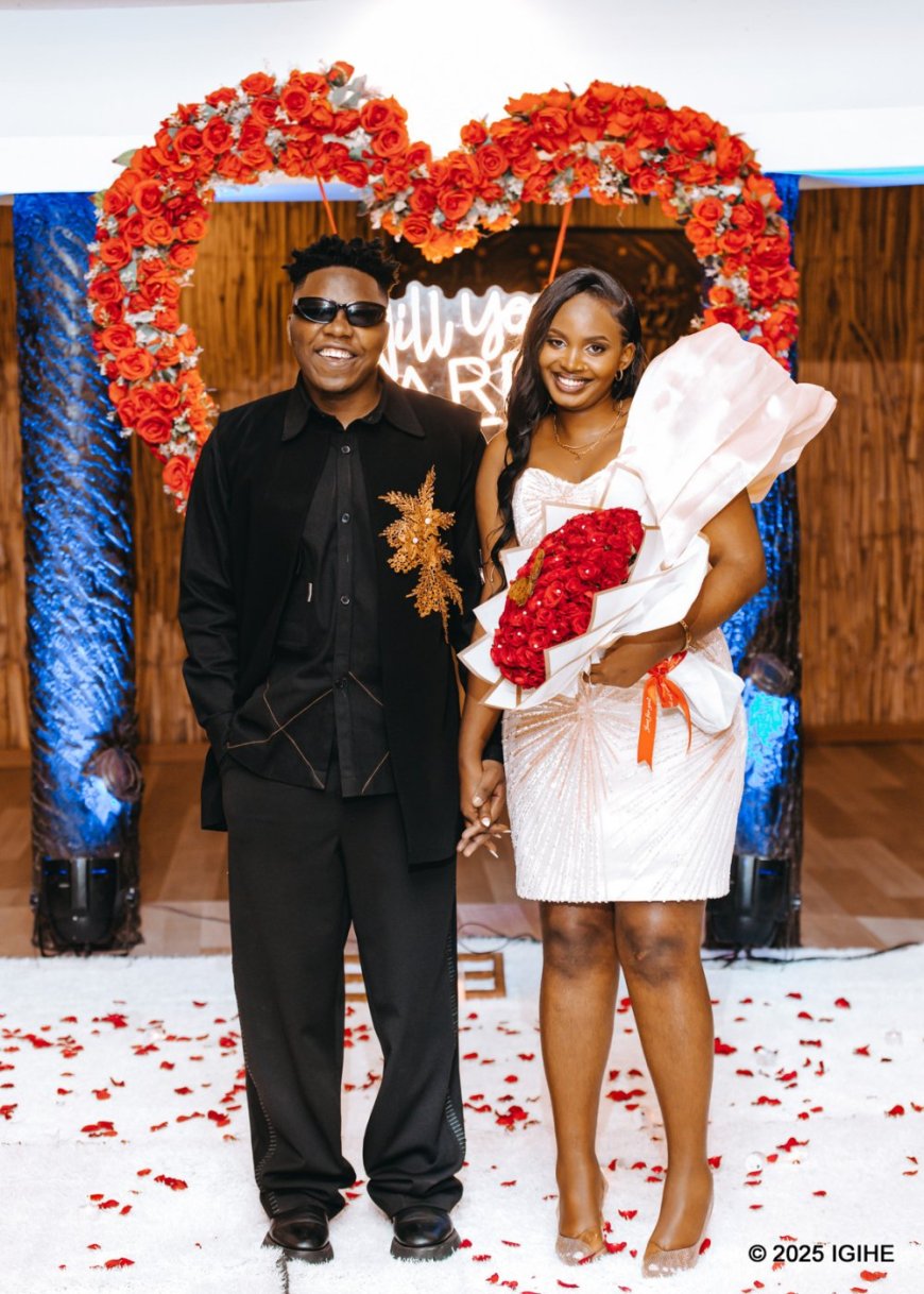 Niyo Bosco nawe wari umaze kumva ko umukunzi we ahageze, yahise akirigita umurya wa gitari amuririmbira indirimbo y’urukundo hanyuma amufata ikiganza amubaza niba koko yakwemera ko barushinga.