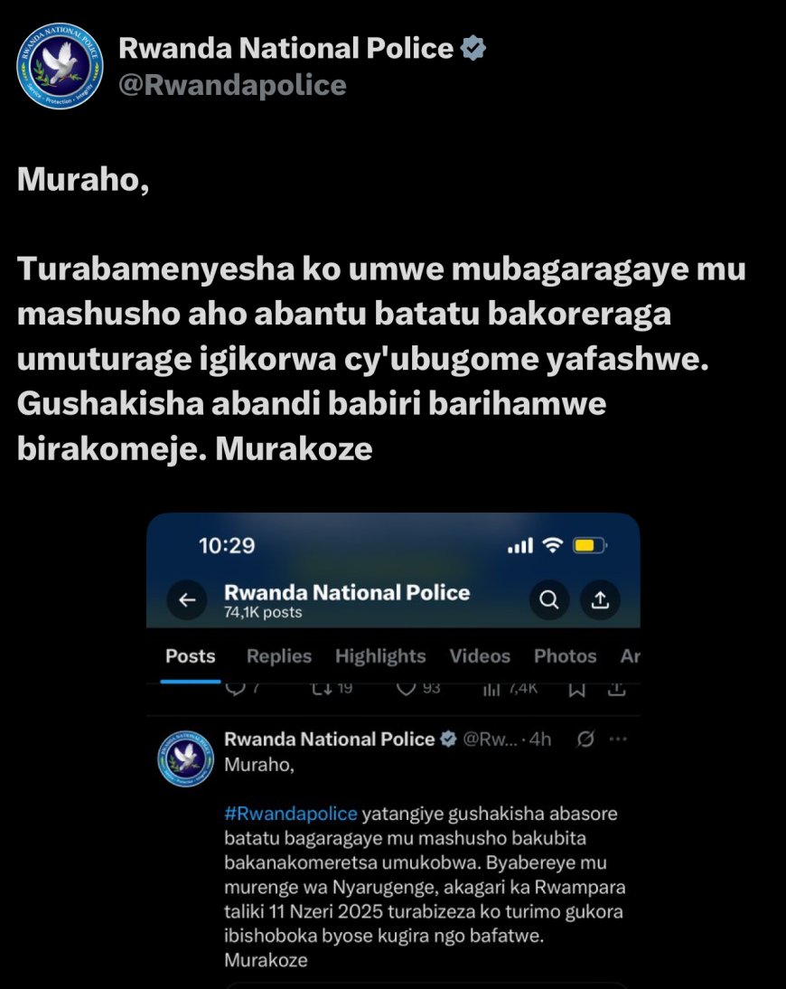 Polisi ikomeza ivuga koi bi “Byabereye mu Murenge wa Nyarugenge, akagari ka Rwampara taliki 11 Nzeri 2025. Turabizeza ko turimo gukora ibishoboka byose kugira ngo bafatwe.”