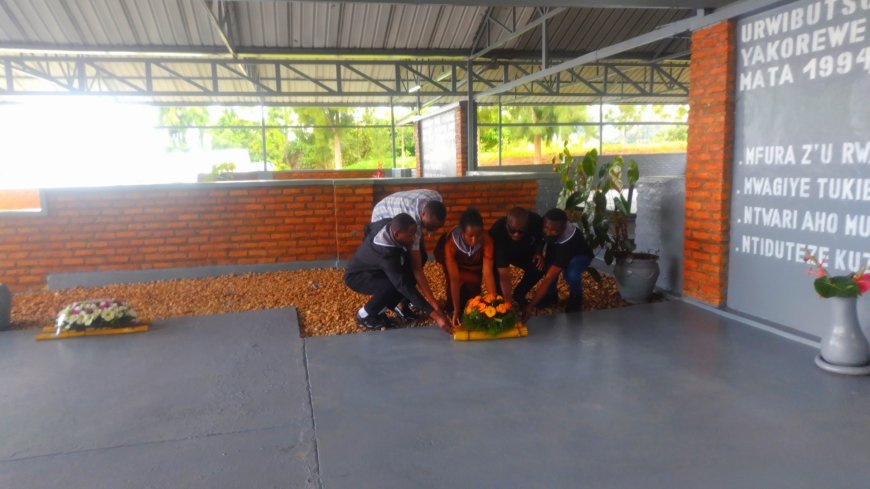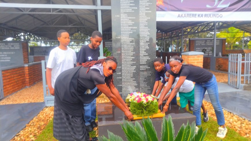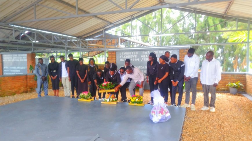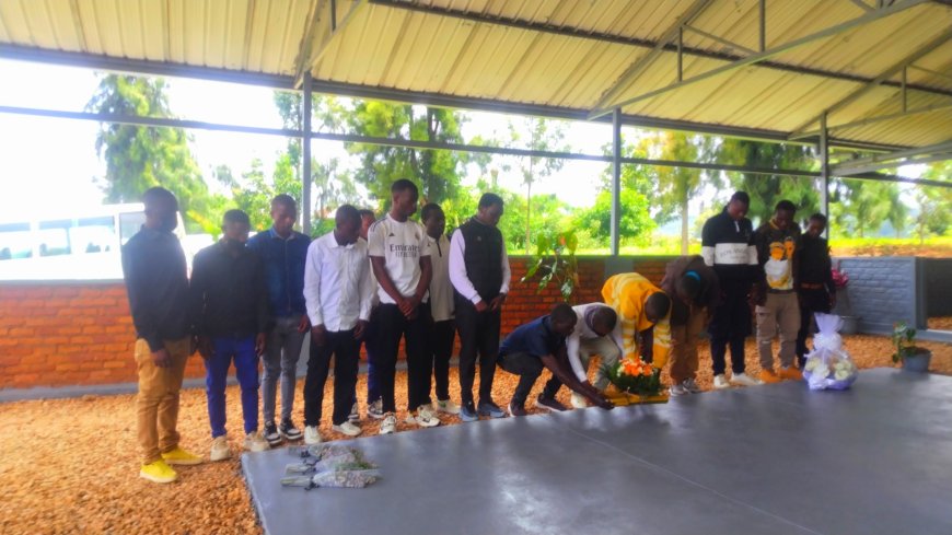 Uru rubyiruko rwashyize indabyo ku mva ziruhukiyemo imibiri yazize Jenoside