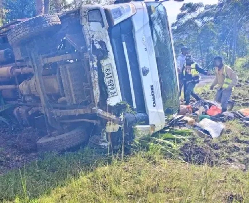 Rusizi: Ikamyo yibaranguye umuhanda abarimo bose bagwa igihumure