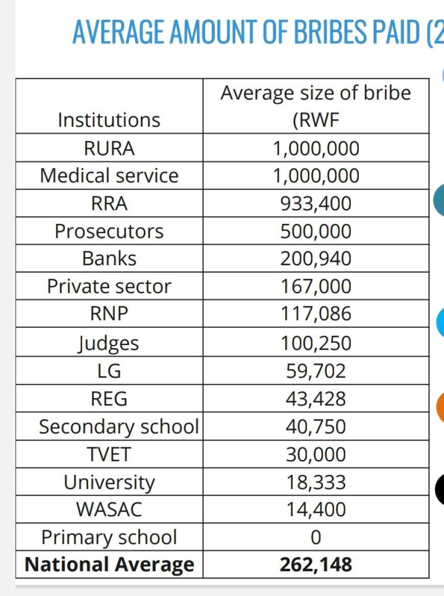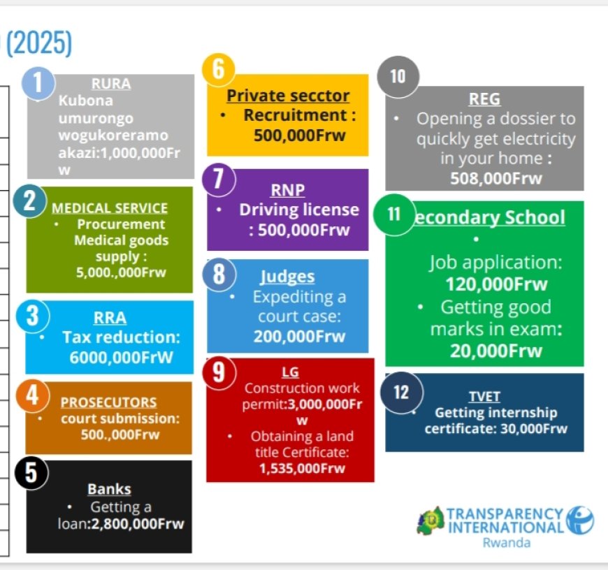 Buri mwaka Umuryango Urwanya Ruswa n’Akarengane, Ishami ry’u Rwanda , Transparency International Rwanda hakorwa ubushakashatsi ku gipimo cya ruswa mu Rwanda [Rwanda Bribery Index] kuri ubu bwagaragaje ko ruswa nto itangwa igenda igabanyuka ariko amafaranga atangwa akiyongera aho ayatanzwe nka ruswa ngo umuntu abone serivisi yageze kuri miliyoni 29.5 Frw mu 2025 .
